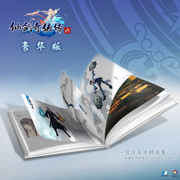 | 特点:《仙剑6》美术精选集采用精装特种纸封面,烫蓝金印刷工艺,共64P,为大家揭秘游戏内大量详细美术设定资料与未曝光神秘美图。角色、场景等丰厚内容收录其中,带你走进写意柔情的画影世界。 | |