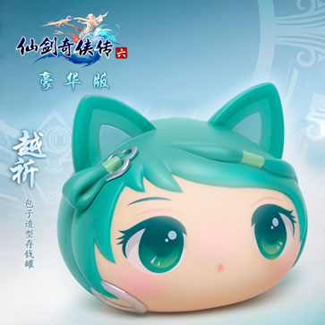 | 特点:此次包子造型的越祈存钱罐,将美观与实用结合,更具收藏性。PVC搪胶工艺使存钱罐手感更为舒适,可拆卸的发饰与尾巴则让越祈包子有了更多角度的萌动可爱。 | |