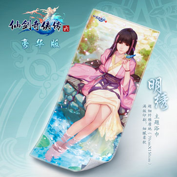 | 特点:以《仙剑6》主角之一“明绣”为主题制作的浴巾,采用超细纤维制作,细腻亲肤、柔软吸水,在方便实用的同时拥有明绣的陪伴,可谓物超所值。 | |